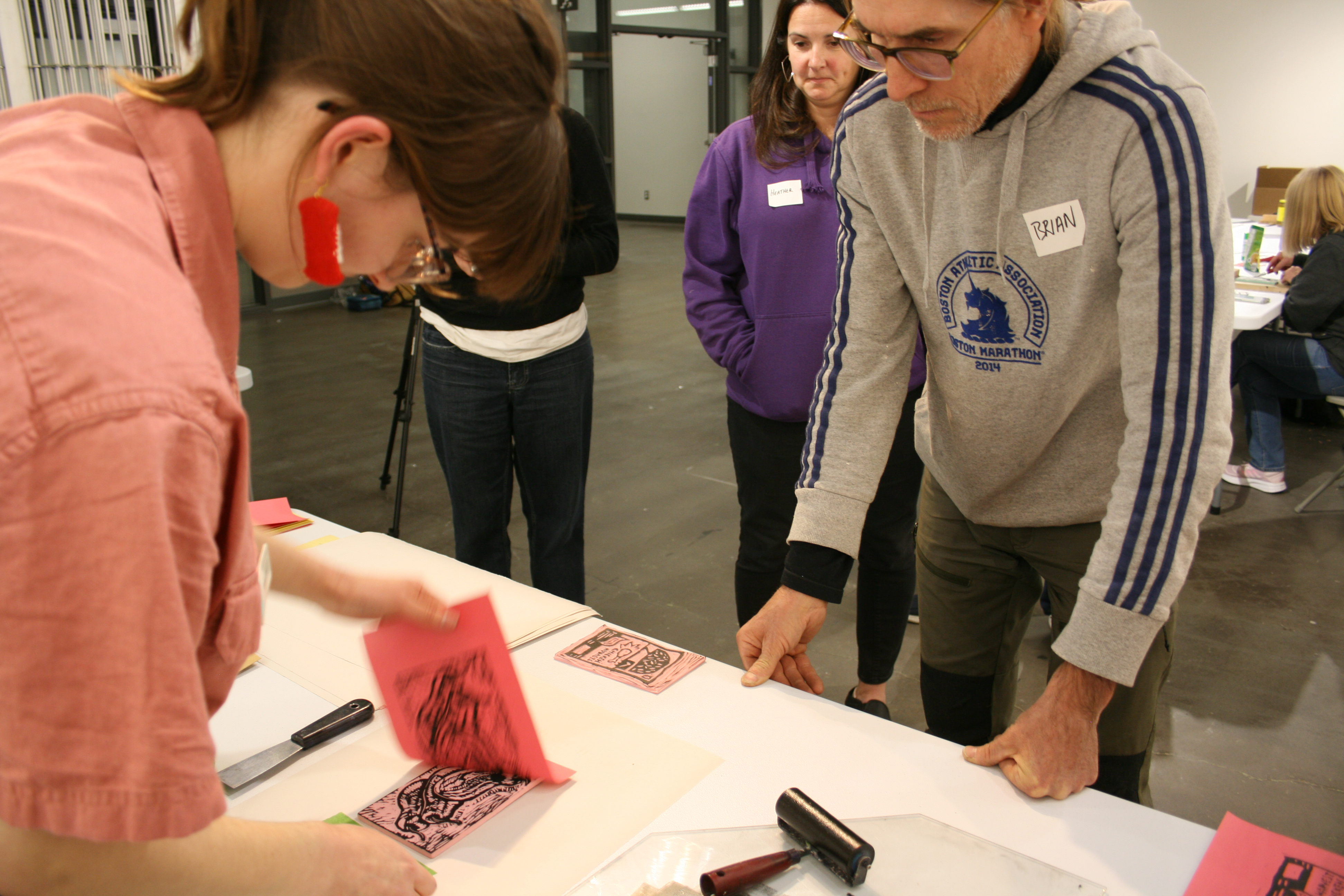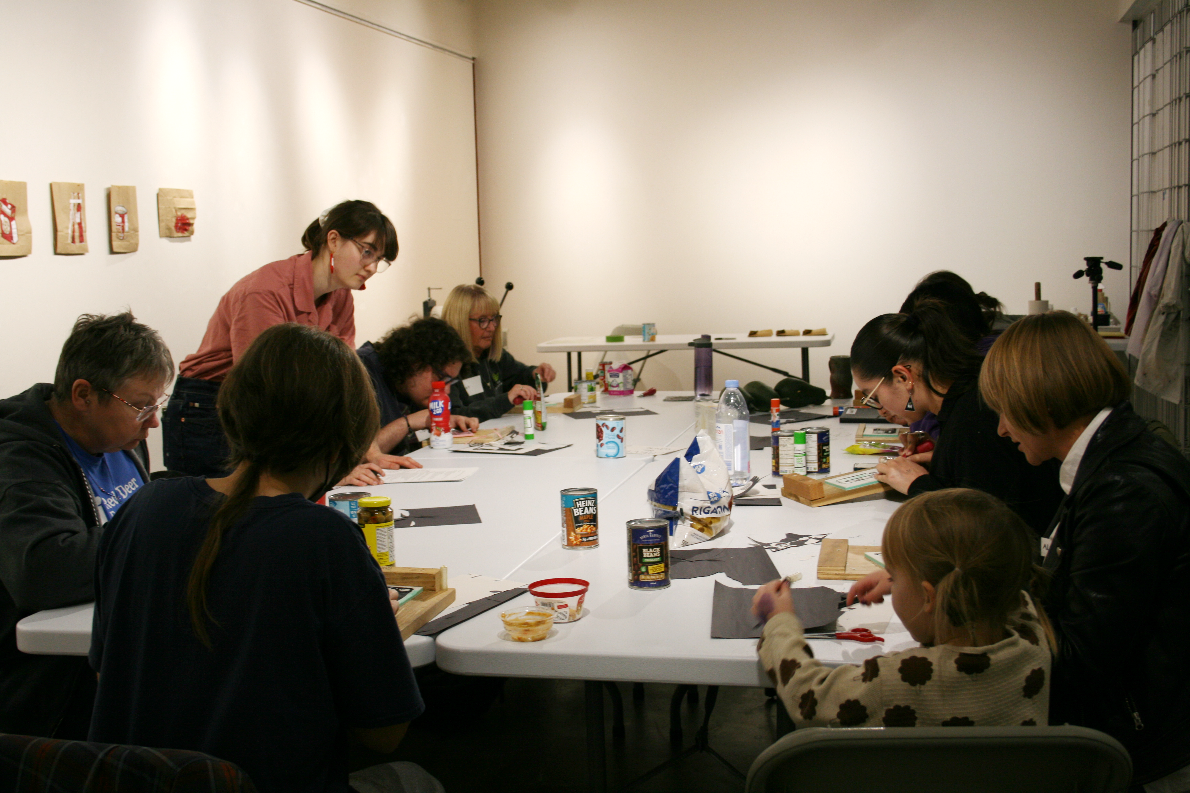 Unhampered Workshop, Bailey Horton, Sage Huard, Leah Beeton, Brian Mcarthur, Alysse Bowd, Alice Kolisnyk, Nadya De La Cruz, and Heather Agnew, Linocut Carving and Discussion, 2024